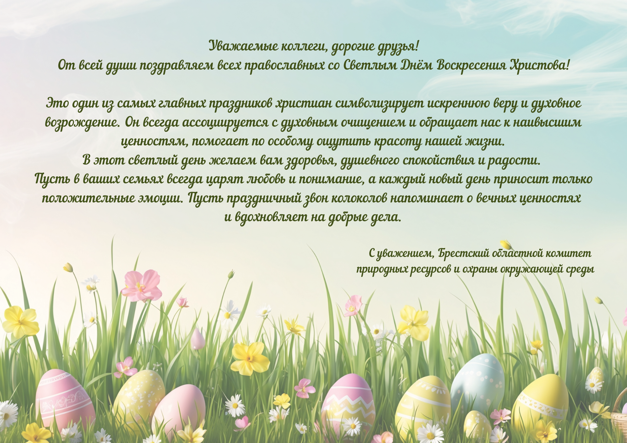 Поздравление православных христиан с Христовым Воскресением от коллектива Брестского областного комитета природных ресурсов и охраны окружающей среды
